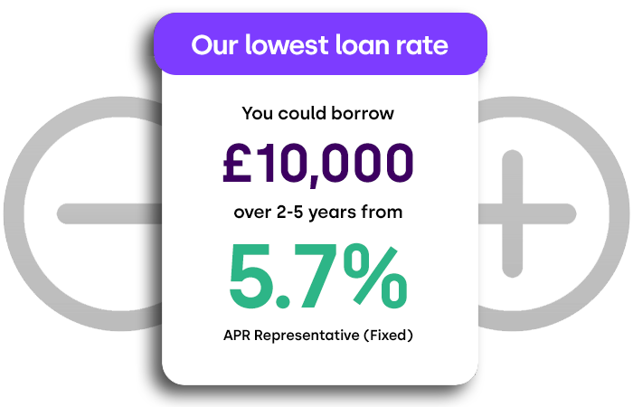 You’ve come to the right place. Applying directly means you could borrow up to £35,000 (that’s £10k more than via price comparison sites!) and get access to our low rate which starts from just 5.7% APR Representative (£7,500-£25,000). Plus, if you already have a loan with us, you could apply to borrow more and get access to our low rates too.