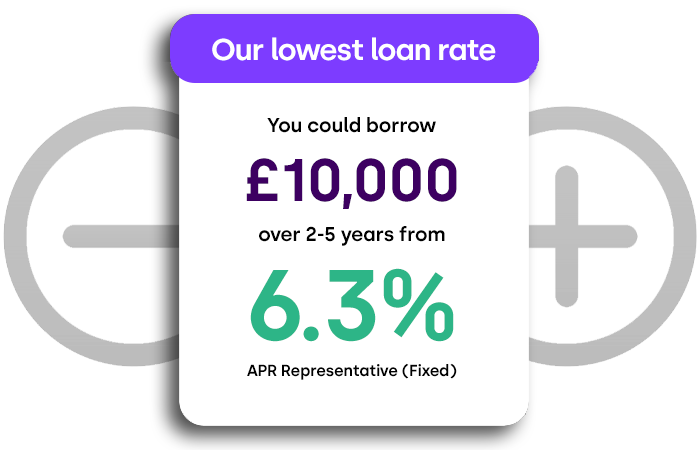 You’ve come to the right place. Applying directly means you could borrow up to £35,000 (that’s £10k more than via price comparison sites!) and get access to our low rate which starts from just 6.3% APR Representative (£7,500-£25,000). Plus, if you already have a loan with us, you could apply to borrow more and get access to our low rates too.